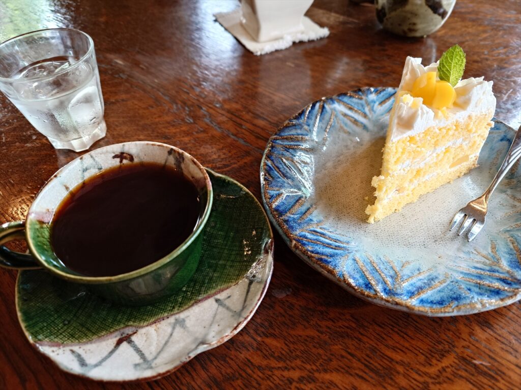 甘すぎないケーキ、深いコーヒー