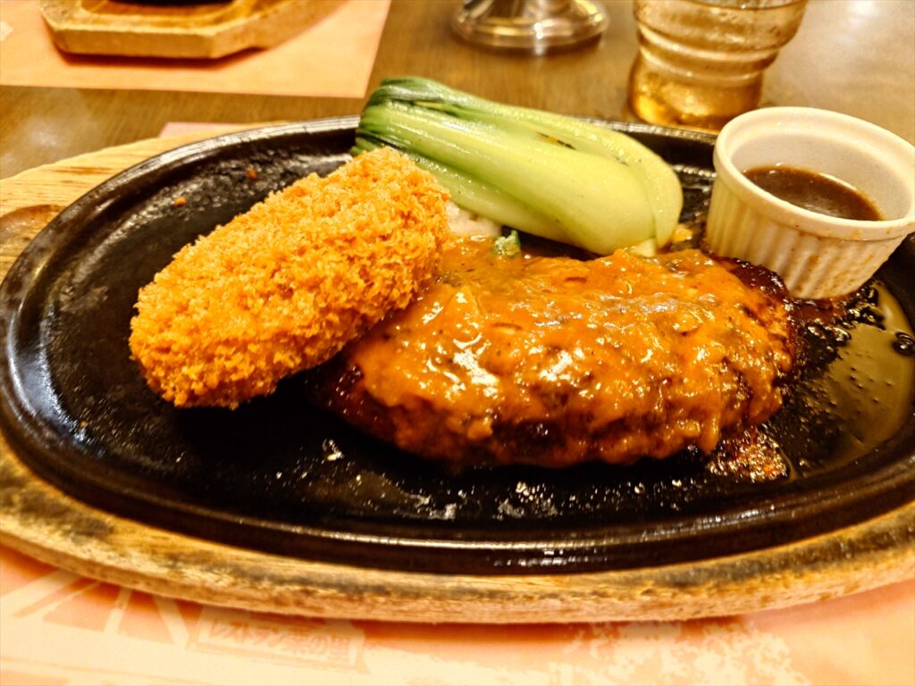 夕食会場も新規開拓のハンバーグ屋